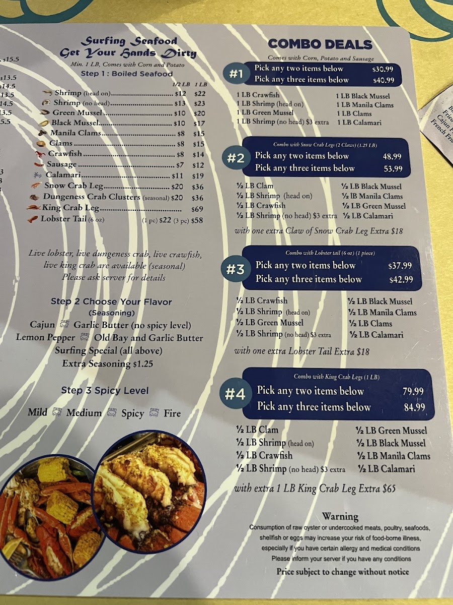 Patrons like KarenLynn Parks laud the San Marcos Boil, a delightful combo of shrimp, crab legs, and lobster tail, seasoned to perfection. Meanwhile, the “Cowboy” option captivates diners with its generous servings of shrimp, crawfish, and Dungeness crab. With attentive and friendly service, Surfing Crab San Marcos stands out as a must-visit for seafood enthusiasts. Come for the incredible flavors and stay for the lively atmosphere!