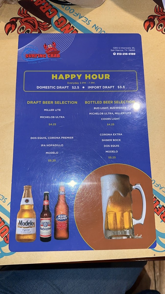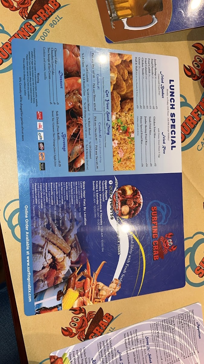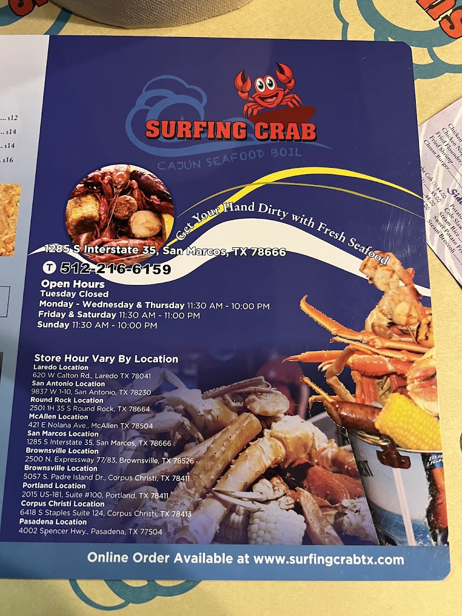 Introducing Surfing Crab San Marcos, a seafood lover's paradise located at 1285 I-35 in San Marcos, Texas. This vibrant restaurant is celebrated for its fresh, flavorful seafood boils and mouthwatering surf and turf options. Customers rave about the easy-to-peel shrimp and the scrumptious surf and turf burger, packed with succulent shredded crab. The cleanliness of the establishment adds to the dining experience, highlighted by a handwashing station for that post-seafood delight cleanup.